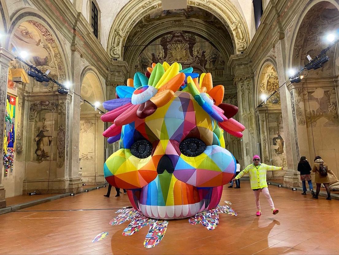 The Renaissance Metaverse is Okuda San Miguel’s first major solo exhibition in Italy, a journey that unfolds between a deconsecrated Renaissance church and the MAGMA gallery in Bologna. An immersive experience that fuses classical symbols and digital aesthetics to reflect on how art is transformed in the age of the metaverse.